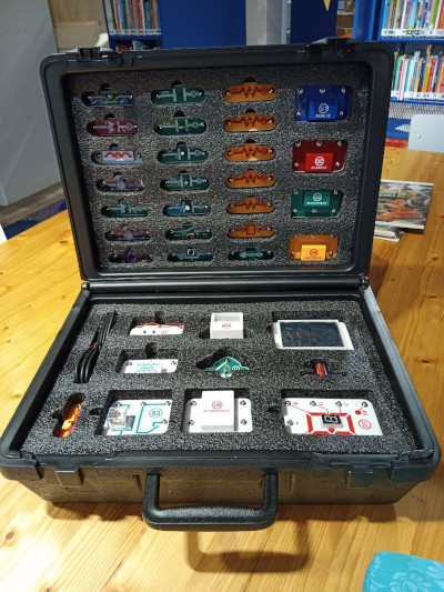 Vandaag gingen we aan de slag met iets nieuws. Iedereen kreeg een zwarte koffer.In deze zwarte koffer zitten elektronica onderdelen.